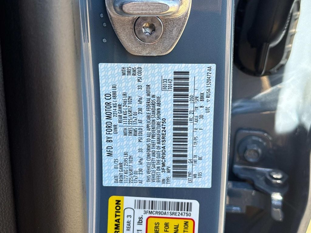 Badlands Tech Package (B&O Sound System by Bang & Olufsen, Connected Navigation, and HD Radio), Equipment Group 400A, 4-Wheel Disc Brakes, 6 Speakers, ABS brakes, Air Conditioning, Alloy wheels, AM/FM radio: SiriusXM, AM/FM Stereo, Auto High-beam Headlights, Auto-dimming Rear-View mirror, Automatic temperature control, Brake assist, Cargo Mat, Compass, Delay-off headlights, Driver door bin, Driver vanity mirror, Dual front impact airbags, Dual front side impact airbags, Electronic Stability Control, Emergency communication system: SYNC 4 911 Assist, Four wheel independent suspension, Front anti-roll bar, Front Bucket Seats, Front Center Armrest, Front fog lights, Front License Plate Bracket, Front reading lights, Fully automatic headlights, Garage door transmitter, Heated door mirrors, Heated front seats, Heated steering wheel, Illuminated entry, Knee airbag, Leather Trimmed Front Bucket Seats, Low tire pressure warning, Memory seat, Occupant sensing airbag, Outside temperature display, Overhead airbag, Overhead console, Panic alarm, Passenger door bin, Passenger vanity mirror, Power door mirrors, Power driver seat, Power Moonroof, Power passenger seat, Power steering, Power windows, Radio data system, Rear anti-roll bar, Rear reading lights, Rear seat center armrest, Rear window defroster, Rear window wiper, Remote keyless entry, Security system, SiriusXM, Speed control, Speed-sensing steering, Speed-Sensitive Wipers, Split folding rear seat, Steering wheel mounted audio controls, SYNC 4 w/Enhanced Voice Recognition, Tachometer, Telescoping steering wheel, Tilt steering wheel, Traction control, Trip computer, Variably intermittent wipers, and Wheels: 17 Matte Black-Painted Aluminum. 21/27 City/Highway MPG