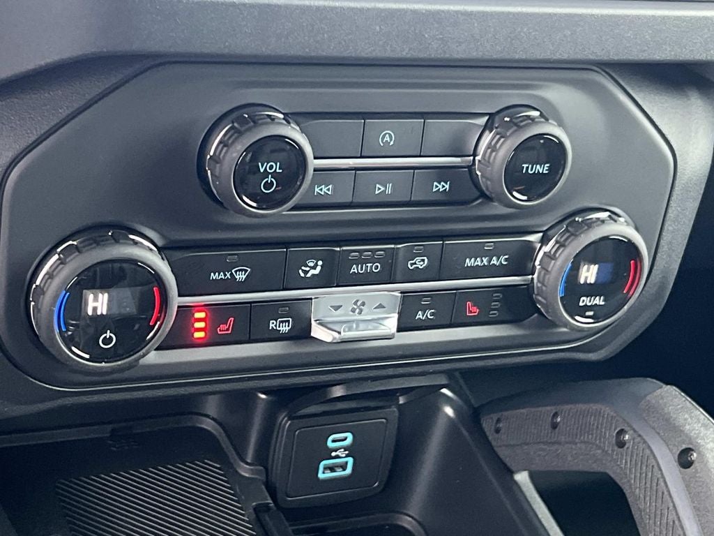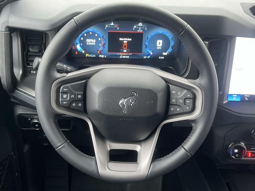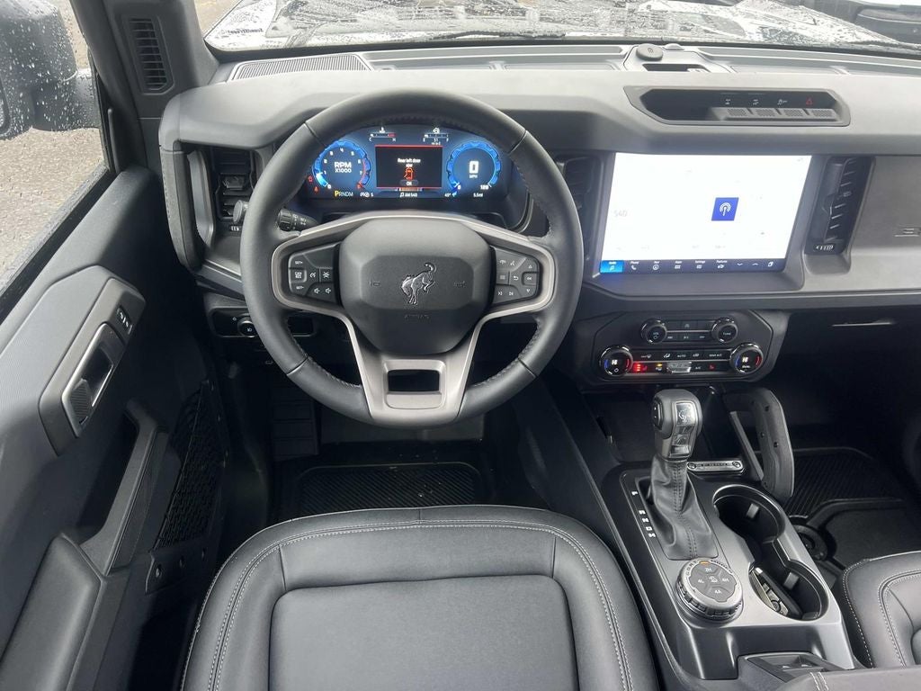 Black Diamond Package (4.46 Final Drive Ratio w/Rear Locking Differential, Auxiliary Switches, LED Fog Lamps, Powder Coated Steel Front & Rear Bumpers, Rock Rails, Washout Capable Rubberized Flooring, and Wheels: 17 Black High Gloss Painted Aluminum), Equipment Group 222A Mid Package (2-Door Intelligent Access w/Lock/Unlock, Ambient Footwell Lighting, Connected Navigation, Dr & Pass Illuminated Sliding Visor Vanity Mirrors, Dual Smart Charging USB Ports, Dual-Zone Electronic Automatic Temperature Control, Front Row Heated Seats, Power Outlet - Back Side of Center Floor Console, and Rear Parking Sensors), 4-Wheel Disc Brakes, 7 Speakers, ABS brakes, Air Conditioning, Alloy wheels, AM/FM radio: SiriusXM with 360L, AM/FM Stereo, Auto High-beam Headlights, Brake assist, Cloth Bucket Seats, Compass, Delay-off headlights, Driver door bin, Driver vanity mirror, Dual front impact airbags, Dual front side impact airbags, Electronic Stability Control, Emergency communication system: 911 Assist, Exterior Parking Camera Rear, Front anti-roll bar, Front Bucket Seats, Front Center Armrest, Front reading lights, Front wheel independent suspension, Fully automatic headlights, Heated door mirrors, Illuminated entry, Integrated roll-over protection, Leather Shift Knob, Low tire pressure warning, Occupant sensing airbag, Outside temperature display, Overhead airbag, Overhead console, Panic alarm, Passenger door bin, Passenger vanity mirror, Power door mirrors, Power steering, Power windows, Radio data system, Remote keyless entry, Security system, SiriusXM w/360L, Speed control, Split folding rear seat, Steering wheel mounted audio controls, SYNC 4, Tachometer, Telescoping steering wheel, Tilt steering wheel, Traction control, Trip computer, Variably intermittent wipers, and Wheels: 17 Carbonized Gray-Painted Aluminum.