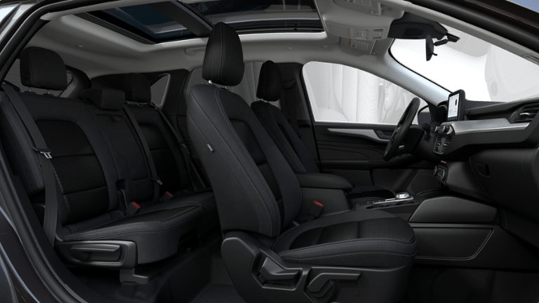 Equipment Group 200A, 3.81 Axle Ratio, 4-Wheel Disc Brakes, 6 Speakers, ABS brakes, Air Conditioning, Alloy wheels, AM/FM radio: SiriusXM, AM/FM Stereo, Auto High-beam Headlights, Automatic temperature control, Black Roof-Rack Side Rails, Brake assist, Bumpers: body-color, Compass, Delay-off headlights, Driver door bin, Driver vanity mirror, Dual front impact airbags, Dual front side impact airbags, Electronic Stability Control, Emergency communication system: SYNC 4 911 Assist, FordPass Connect, Four wheel independent suspension, Front anti-roll bar, Front Bucket Seats, Front Center Armrest, Front dual zone A/C, Front License Plate Bracket, Front reading lights, Fully automatic headlights, Illuminated entry, Knee airbag, Low tire pressure warning, Occupant sensing airbag, Outside temperature display, Overhead airbag, Overhead console, Panic alarm, Panoramic Vista Roof, Passenger door bin, Passenger vanity mirror, Power door mirrors, Power Liftgate, Power steering, Power windows, Radio data system, Rear anti-roll bar, Rear reading lights, Rear seat center armrest, Rear window defroster, Rear window wiper, Remote keyless entry, Speed control, Speed-sensing steering, Speed-Sensitive Wipers, Split folding rear seat, Spoiler, Steering wheel mounted audio controls, SYNC 4, Tachometer, Telescoping steering wheel, Tilt steering wheel, Traction control, Trip computer, Unique Cloth Front Bucket Seats, Variably intermittent wipers, and Wheels: 17 Shadow Silver-Painted Aluminum. 27/34 City/Highway MPG