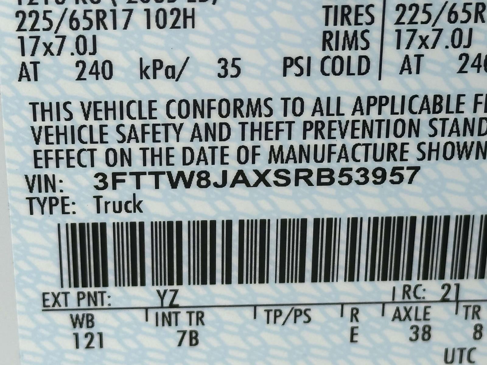 VIN: 3FTTW8JAXSRB53957