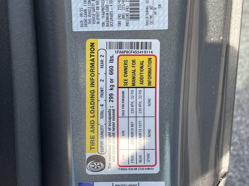 Equipment Group 400A Standard Package, ABS brakes, Alloy wheels, Compass, Electronic Stability Control, Front dual zone A/C, Illuminated entry, Low tire pressure warning, Remote keyless entry, Traction control, 4-Wheel Disc Brakes, Air Conditioning, AM/FM Stereo, Auto High-beam Headlights, Automatic temperature control, Brake assist, Bumpers: body-color, Delay-off headlights, Driver door bin, Driver vanity mirror, Dual front impact airbags, Dual front side impact airbags, Emergency communication system: 911 Assist, Exterior Parking Camera Rear, Four wheel independent suspension, Front anti-roll bar, Front Bucket Seats, Front Center Armrest, Front reading lights, Fully automatic headlights, Knee airbag, Leather Shift Knob, Leather steering wheel, Occupant sensing airbag, Outside temperature display, Overhead airbag, Overhead console, Panic alarm, Passenger door bin, Passenger vanity mirror, Power door mirrors, Power steering, Power windows, Radio data system, Rain sensing wipers, Rear anti-roll bar, Rear Parking Sensors, Rear window defroster, Speed control, Speed-sensing steering, Speed-Sensitive Wipers, Split folding rear seat, Spoiler, Sport steering wheel, Steering wheel mounted audio controls, SYNC 4, Tachometer, Telescoping steering wheel, Tilt steering wheel, Trip computer, Variably intermittent wipers, and Voltmeter. Recent Arrival!