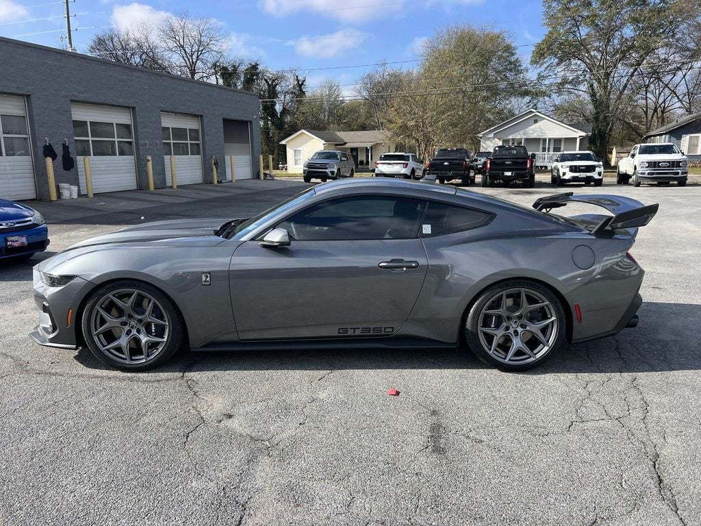 Carbonized Gray Metallic 2025 Ford Mustang Shelby GT 350 RWD 10-Speed Automatic 5.0L V8 Ti-VCT ABS brakes, Alloy wheels, Compass, Electronic Stability Control, Equipment Group 400A Standard Package, Front dual zone A/C, Illuminated entry, Low tire pressure warning, Remote keyless entry, Traction control.